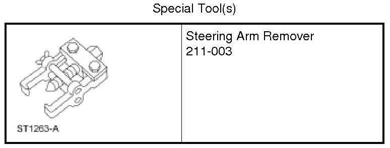 Support the axle with a suitable jack, and lower the vehicle enough to relieve the tension on the trackbar. Remove and discard the trackbar ball joint nut. Using the Steering Arm Remover, disconnect the trackbar at the axle, then using mechanic's wire, position the trackbar aside.