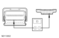 - For gasoline engines, measure the resistance between the PCM C175B-59, circuit VDB04 (WH/BU), harness side and the DLC (Data Link Connector) C251-6, circuit VDB04 (WH/BU), harness side.