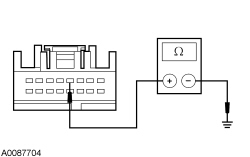 - Measure the resistance between the PAM (Parking Aid Module) C2023-4, circuit GD184 (BK/GY or BK/YE), harness side and ground.