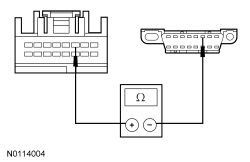 - Measure the resistance between the PAM (Parking Aid Module) C2023-11, circuit VDB05 (WH), harness side and the DLC (Data Link Connector) C251-14, circuit VDB05 (WH), harness side.