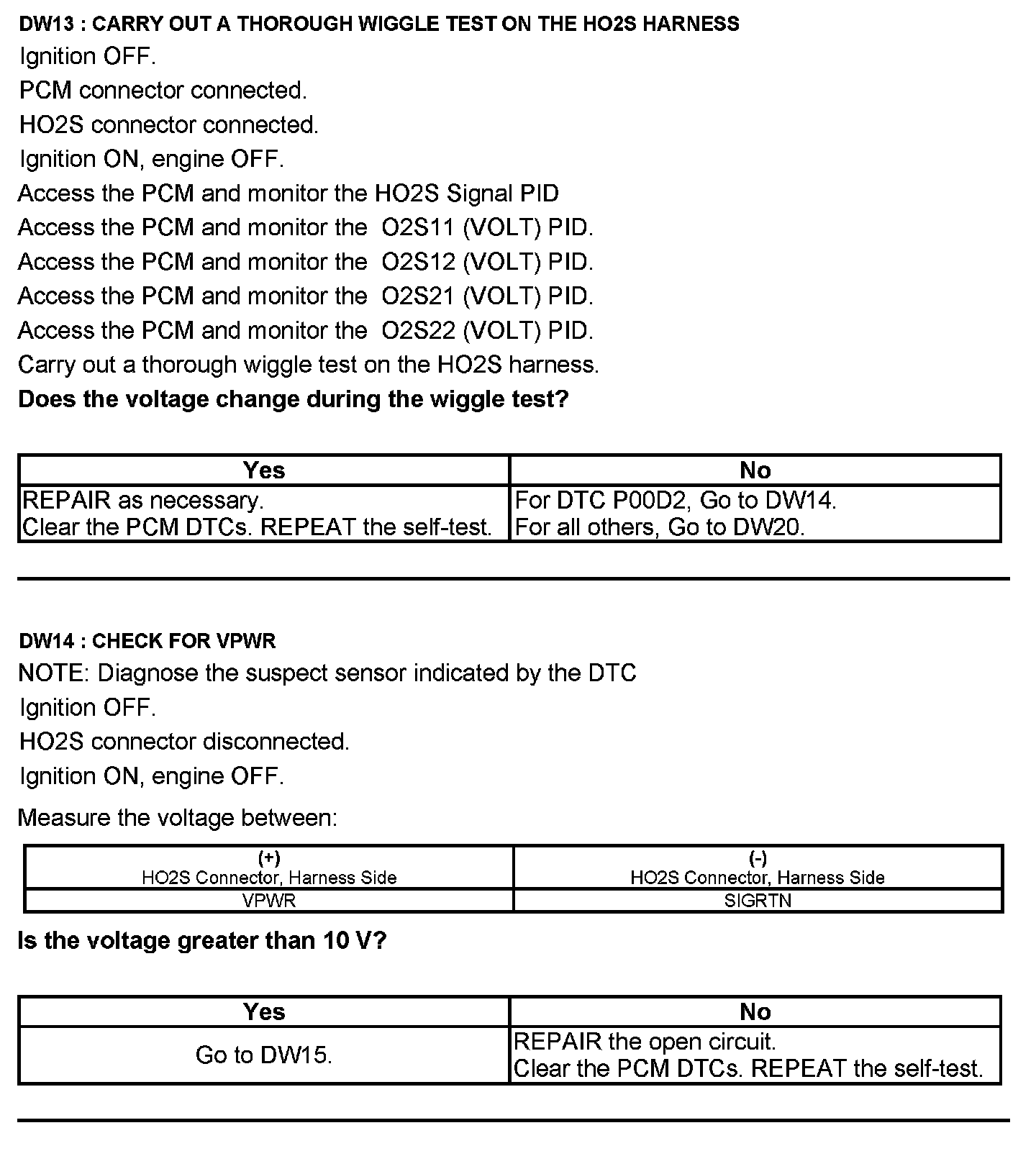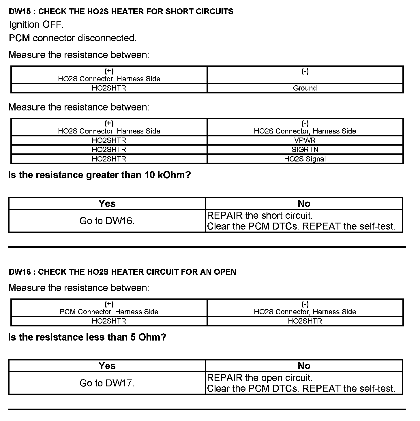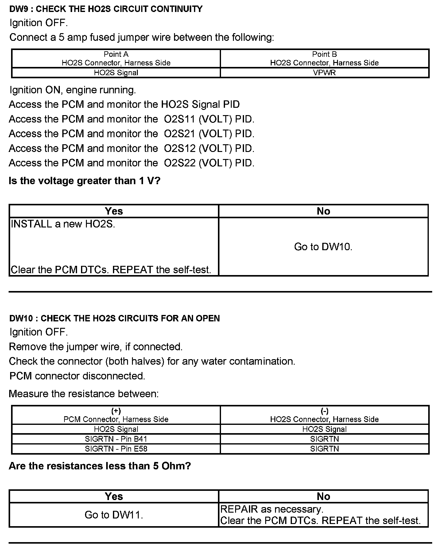 Test DW: Heated Oxygen Sensor (HO2S)