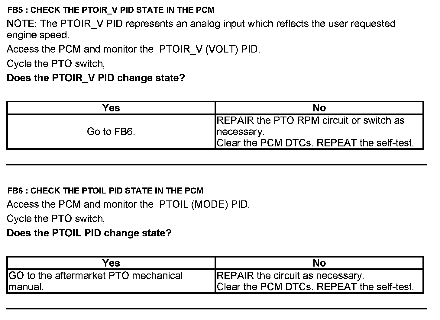 Test FB: Power Take Off (PTO)