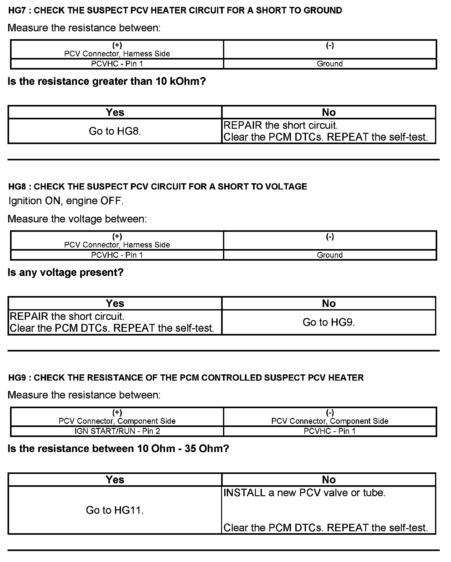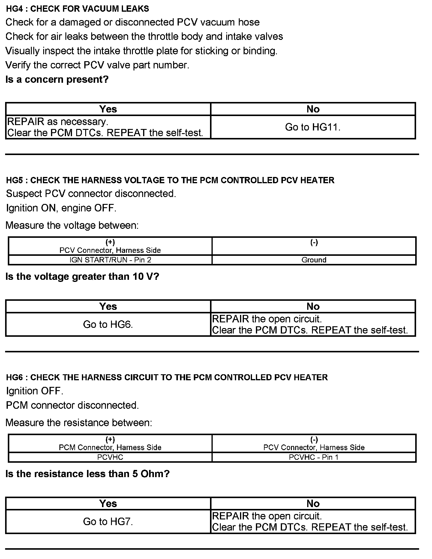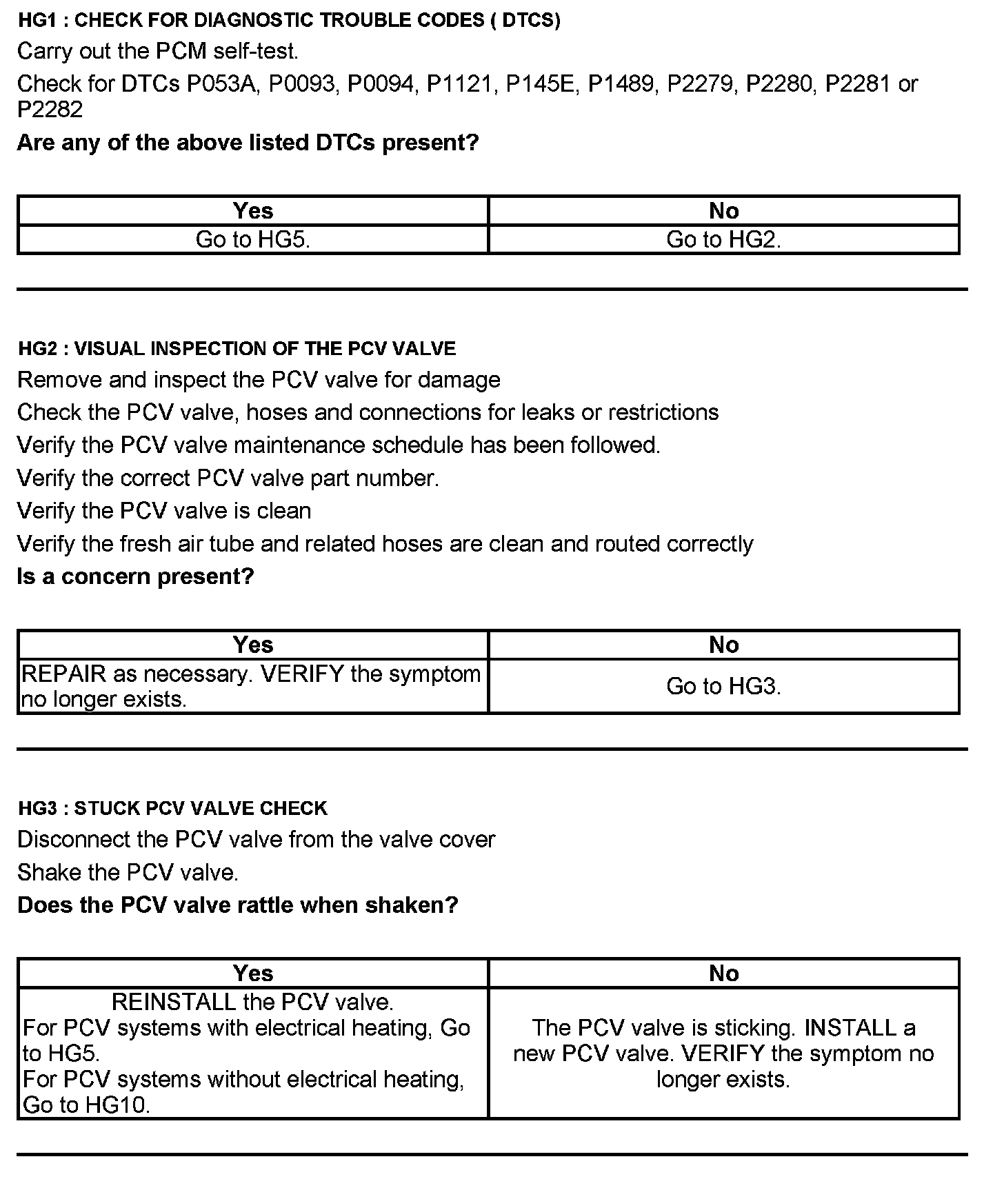 Test HG: Positive Crankcase Ventilation (PCV) System