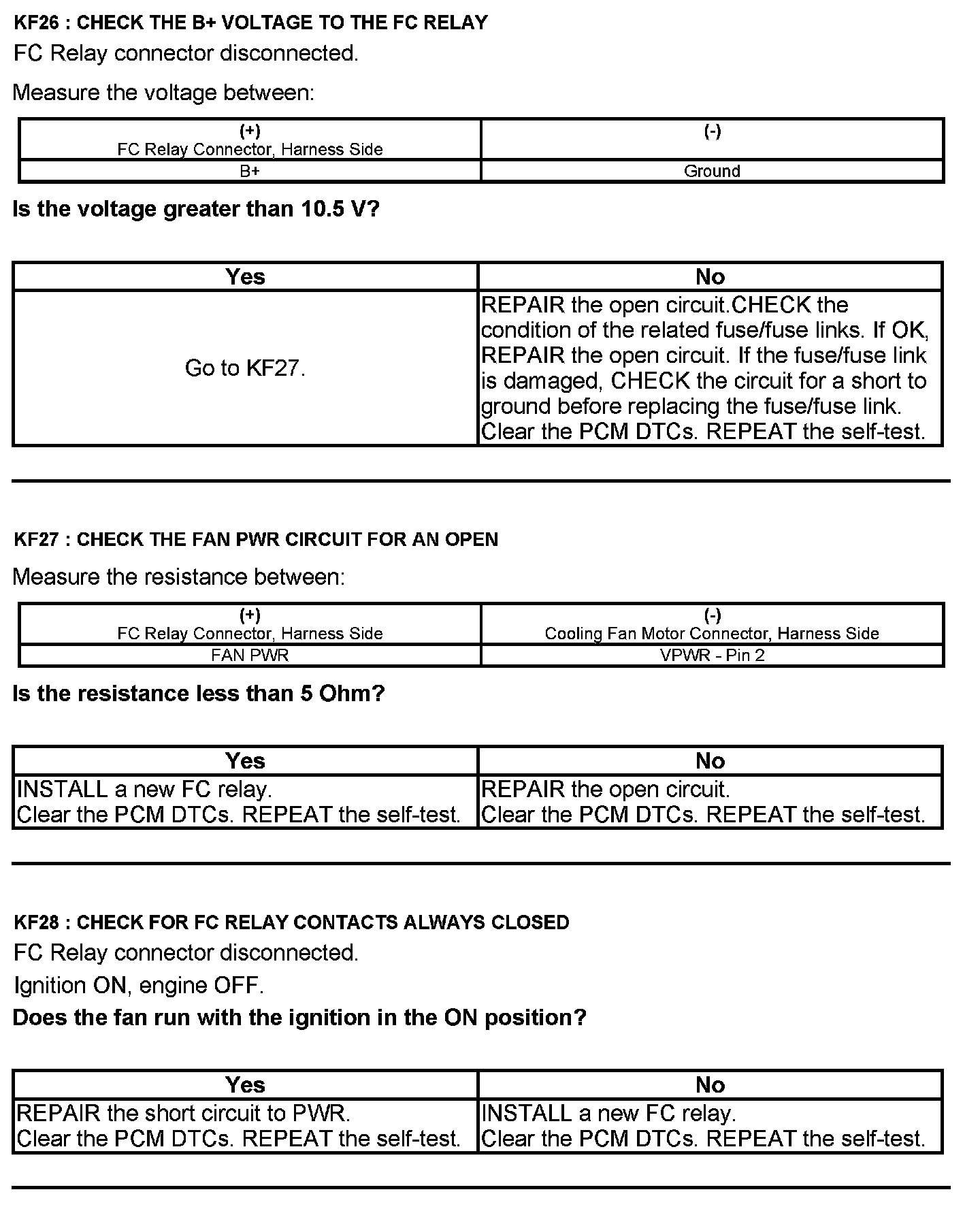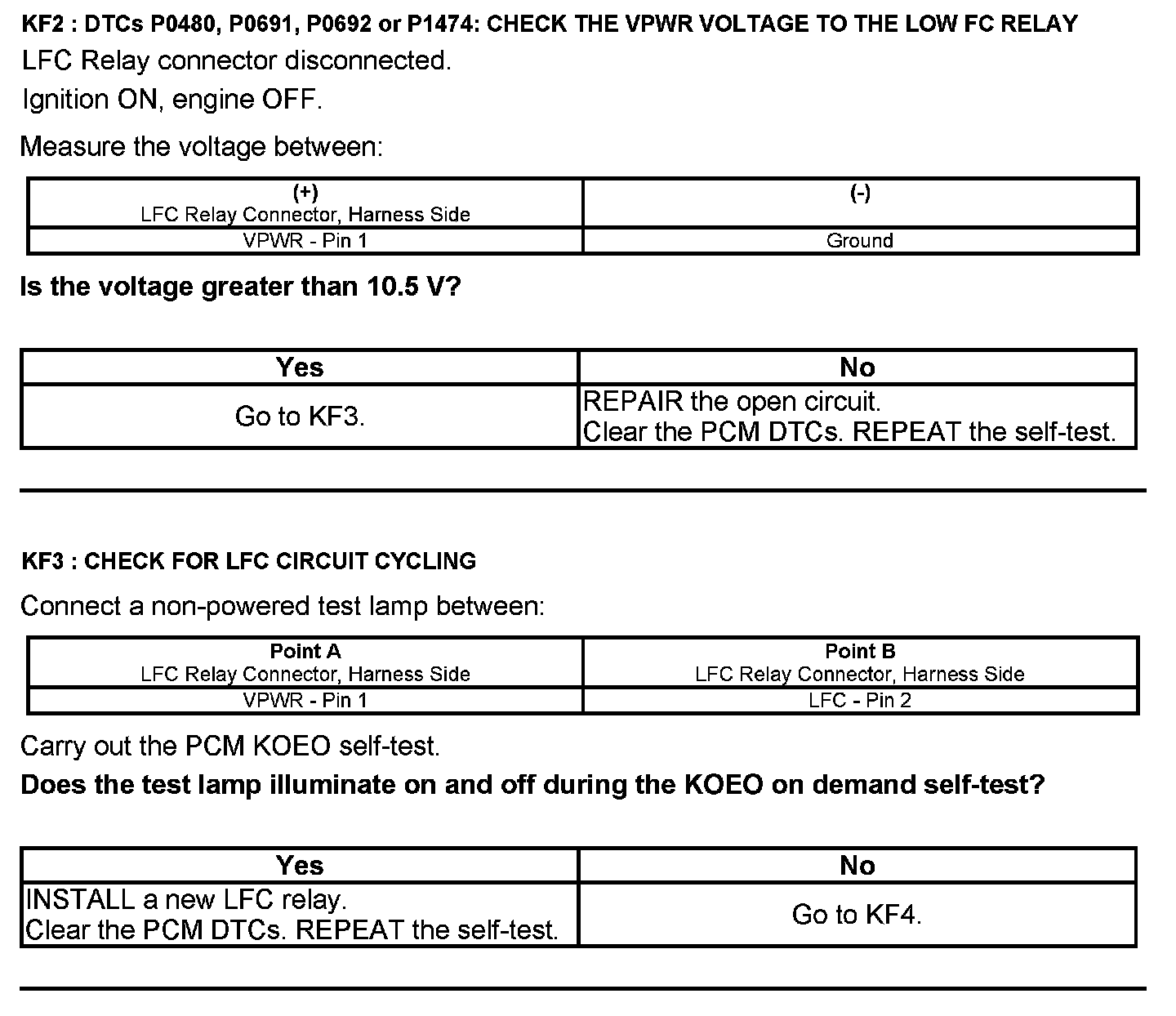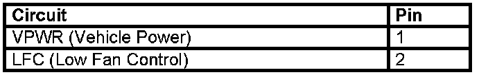 NOTE: The VPWR and LFC circuits may be reversed in the harness connector. Also, the LFC circuit may be wired to two separate relays. Refer to the Wiring Diagrams for additional information.