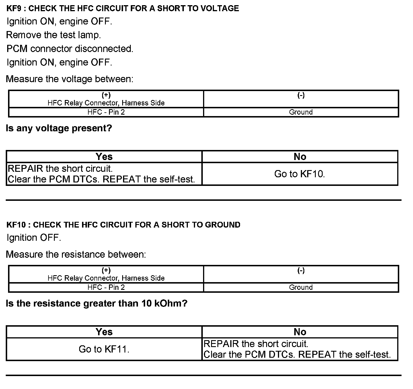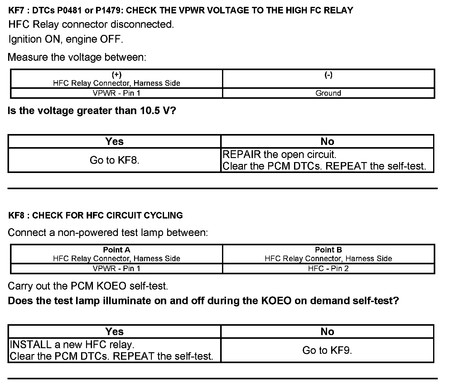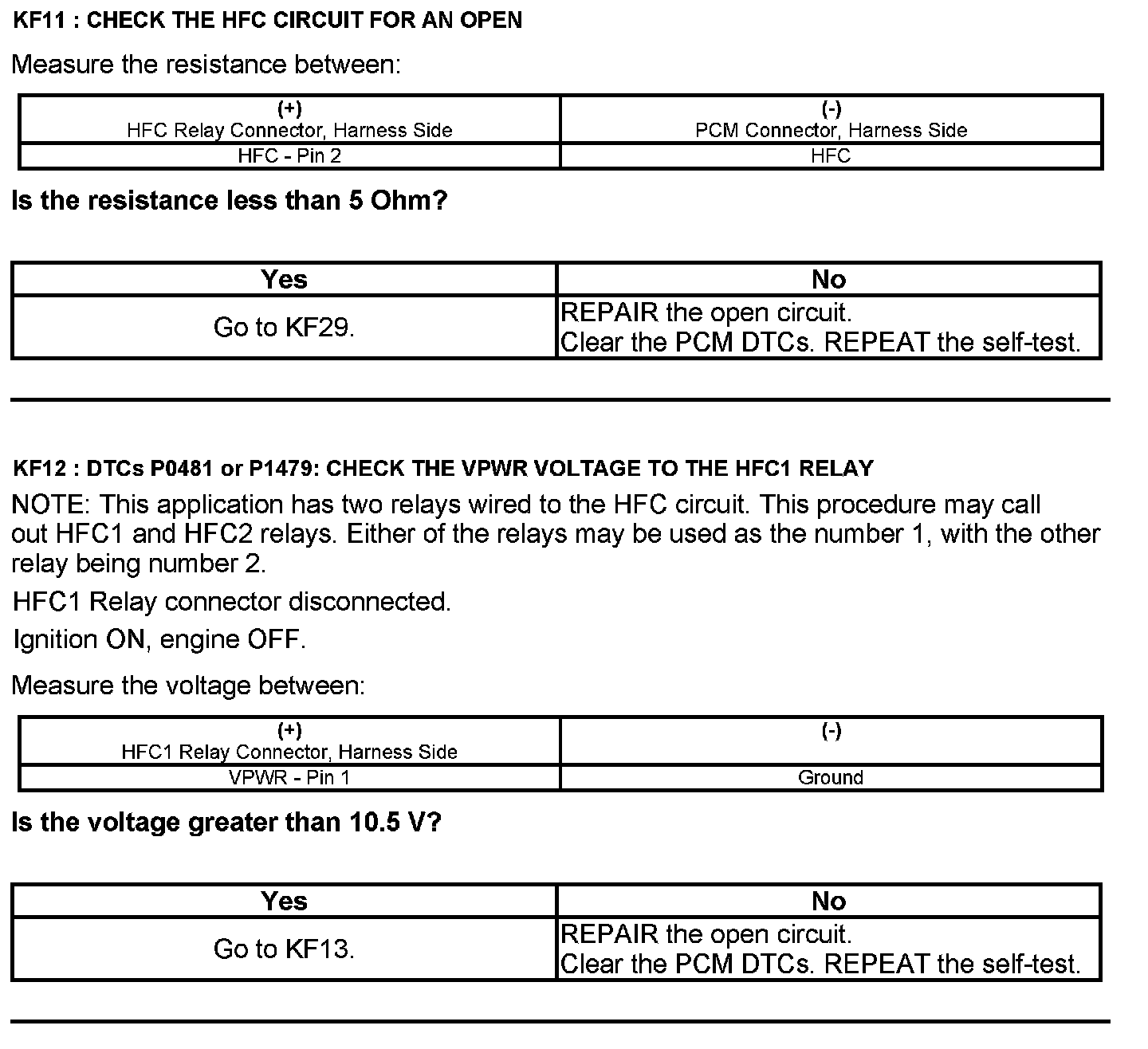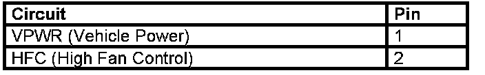 NOTE: The VPWR and HFC circuits may be reversed in the harness connector. Also, the HFC circuit may be wired to two separate relays. Refer to the Wiring Diagrams for additional information.