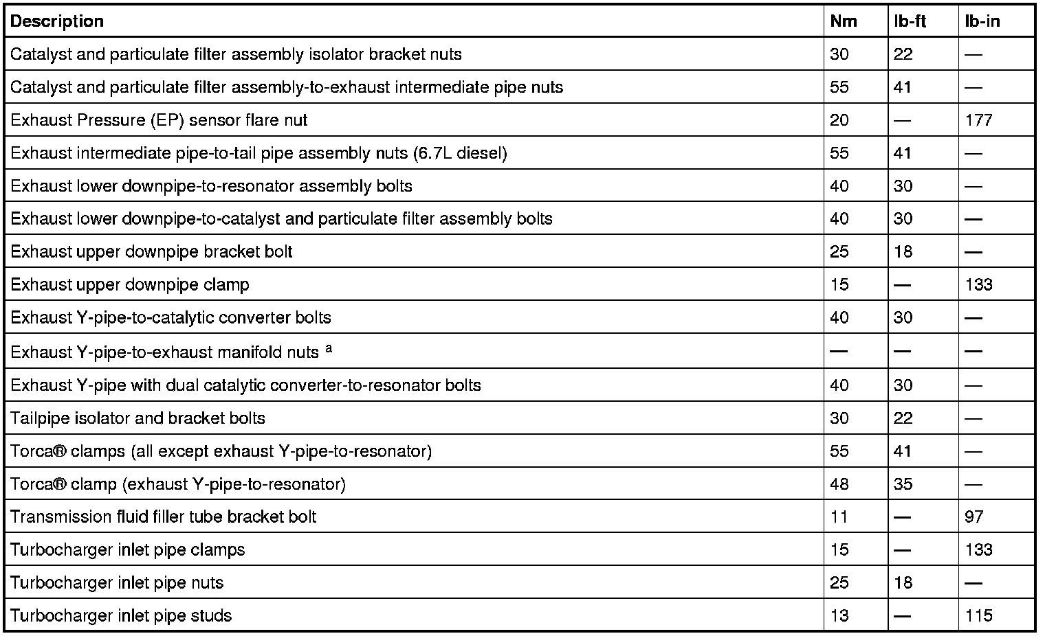 Torque Specifications