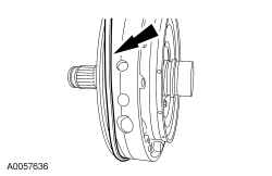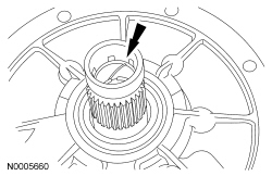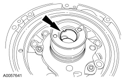 11. Inspect the converter hub bushing. If scored or excessively worn, install a new pump. Note the orientation of the notch in the bushing. It must face up.