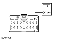 - Measure the resistance between clockspring C218-1, circuit CR101 (VT/BN), harness side and C218-9, circuit RR101 (YE/GN), harness side.