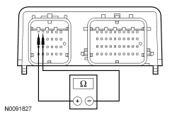 - Measure the resistance between RCM (Restraints Control Module) C310A pins 1 and 2, component side.