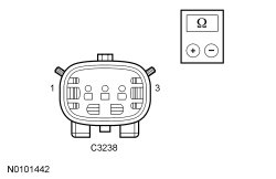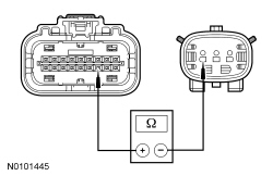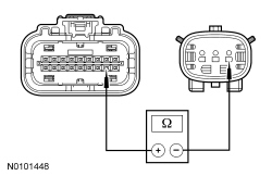 - Measure the resistance between BTS (Belt Tension Sensor) C3238-1, circuit VR210 (BU/BN), harness side and OCSM (Occupant Classification System Module) C3159-12, circuit VR210 (BU/BN), harness side.