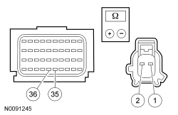 - Measure the resistance between RCM (Restraints Control Module) C310B, harness side and passenger C-pillar side impact sensor C3212, harness side using the following chart.