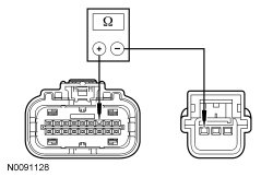 - Measure the resistance between OCS (Occupant Classification System) weight sensor bolt "A" C3324-2, circuit RR140 (GN/OG), harness side and ground.