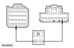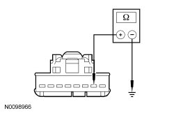 - Measure the resistance between PAD (Passenger Air Bag Deactivation) indicator C2114-2, circuit RR224 (GY/BU), harness side and ground.