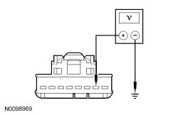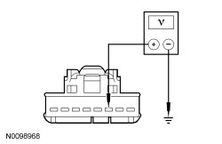 - Measure the voltage between PAD (Passenger Air Bag Deactivation) indicator C2114-2, circuit RR224 (GY/BU), harness side and ground.