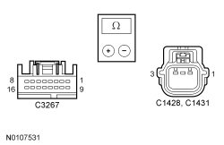 - Measure the resistance between the PAM (Parking Aid Module) C3267, harness side and the suspect active park assist sensor, harness side as follows:
