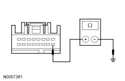 - Measure the resistance between the PAM (Parking Aid Module) C3267-9, circuit LMP07 (BU/WH), harness side and ground.