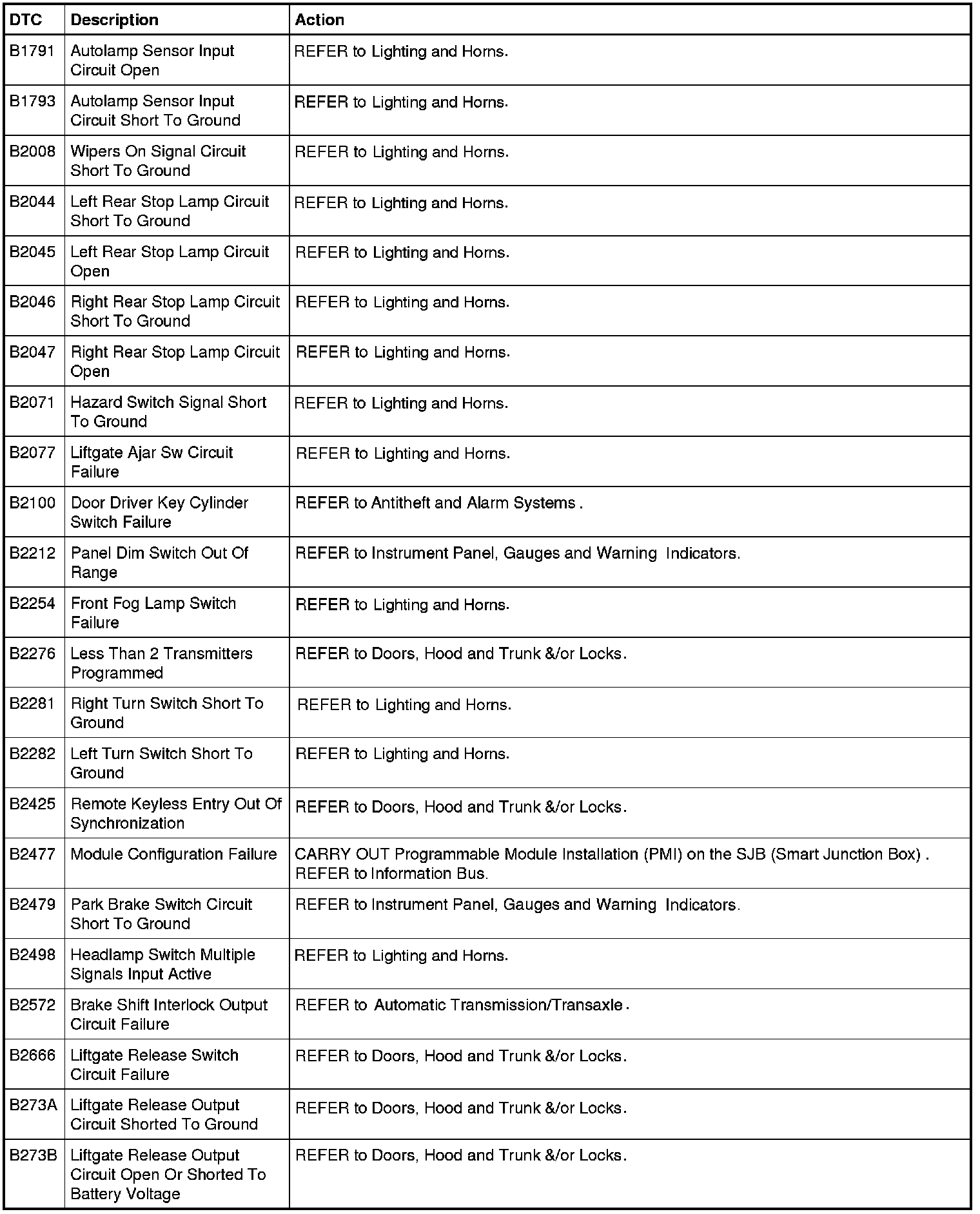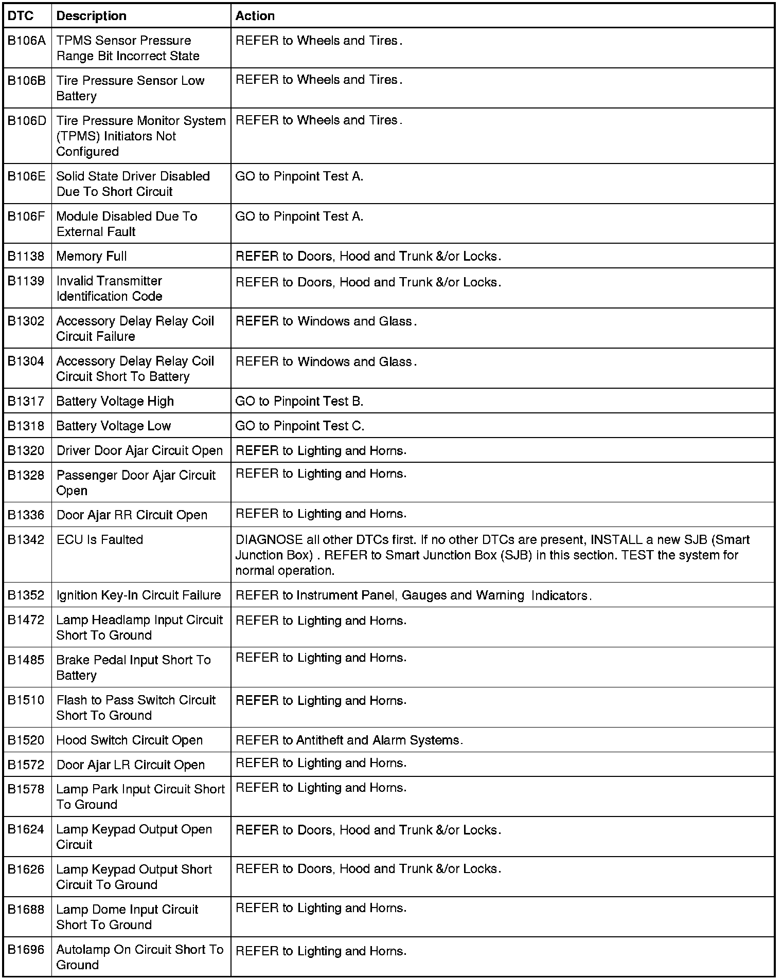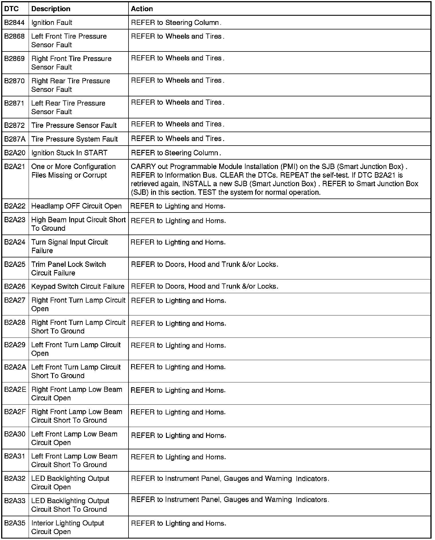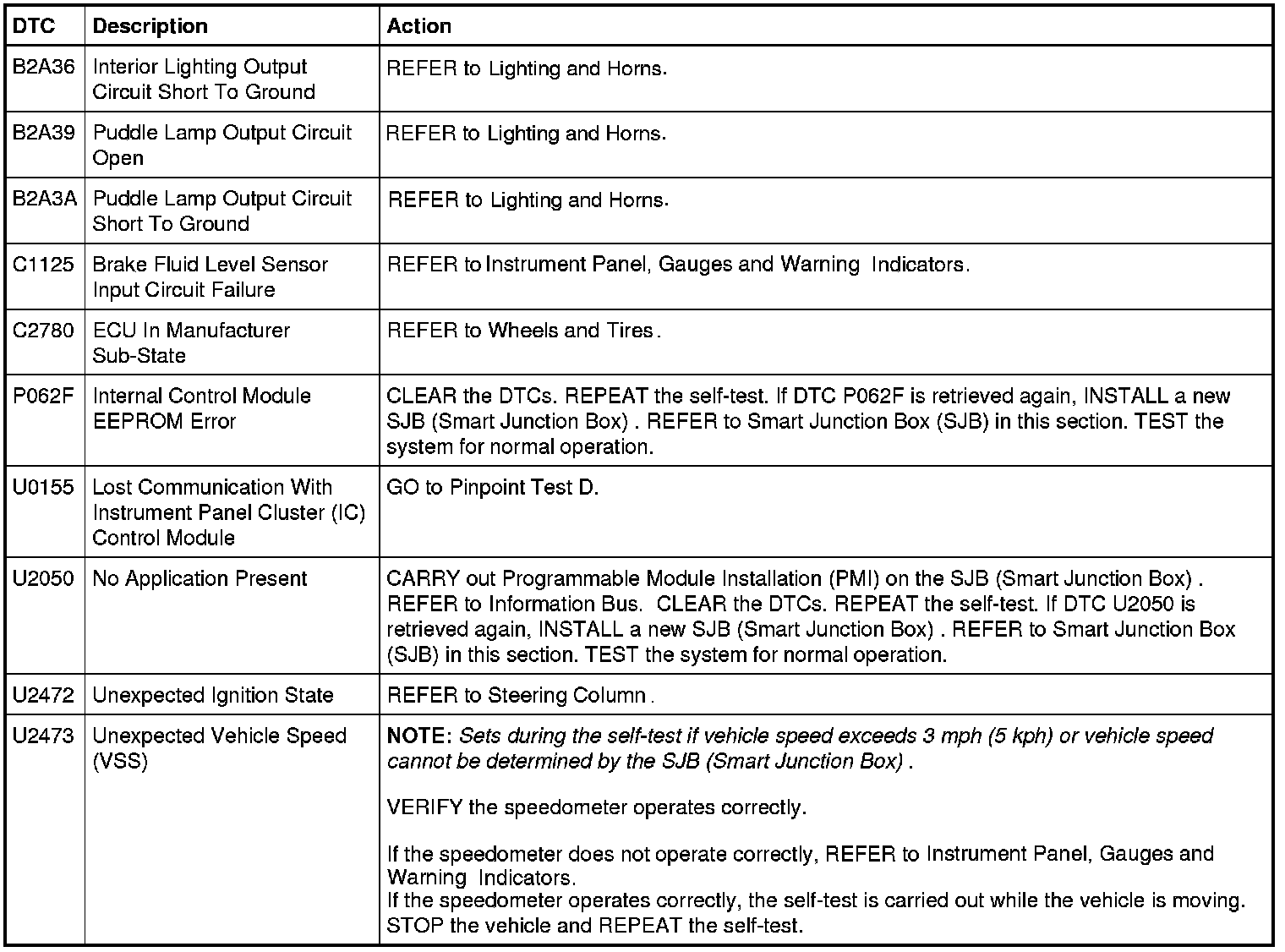 Smart Junction Box (SJB) DTC Chart