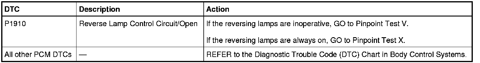 PCM DTC Chart