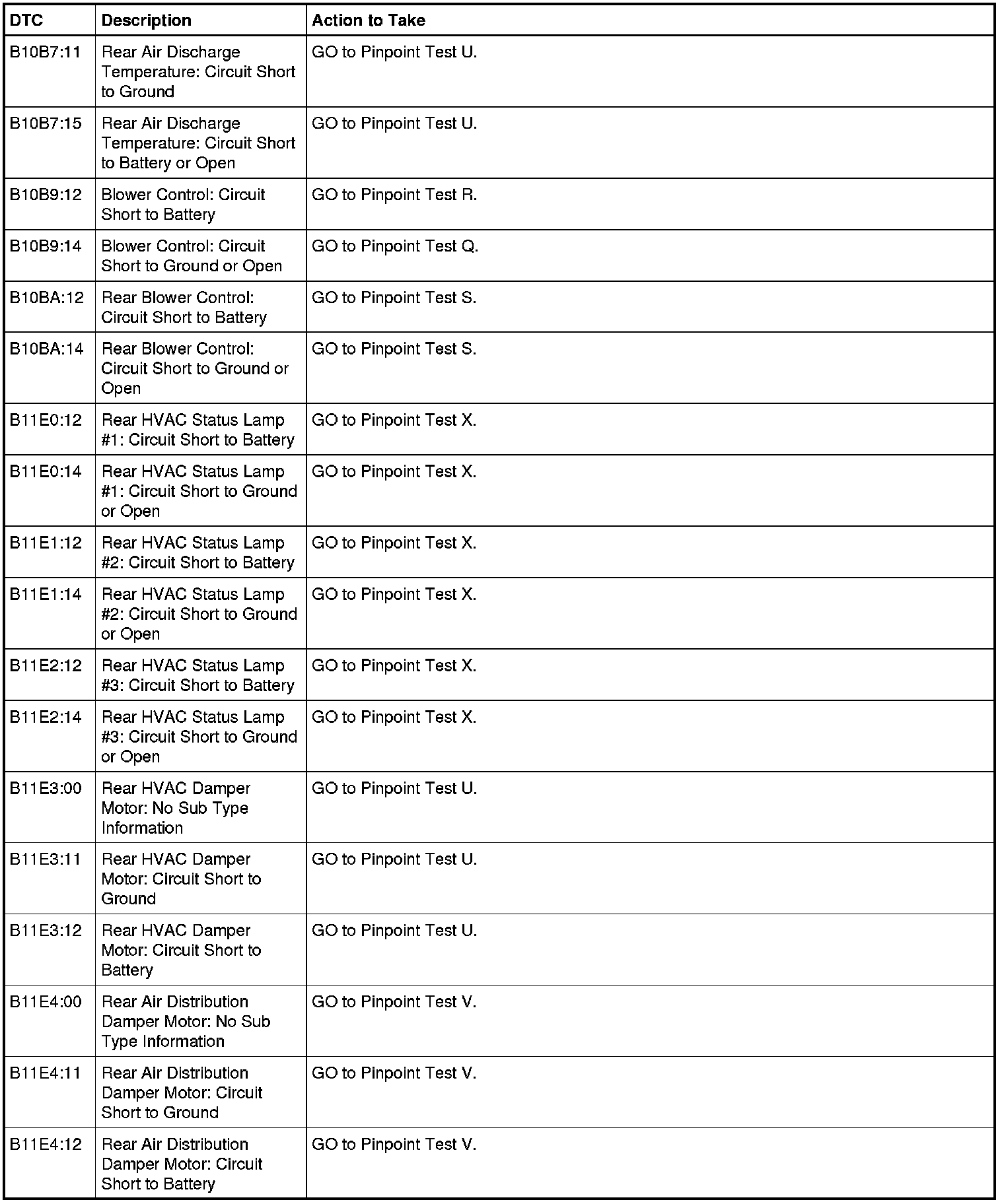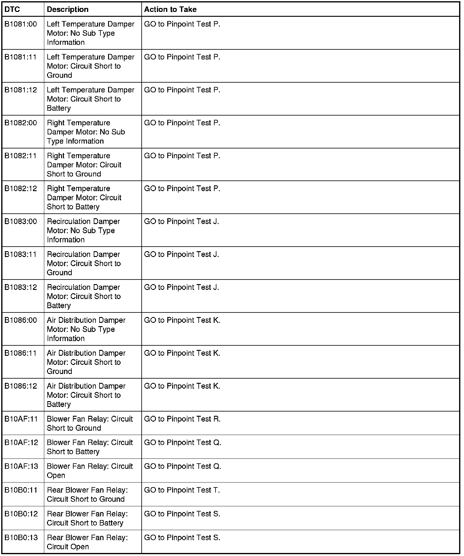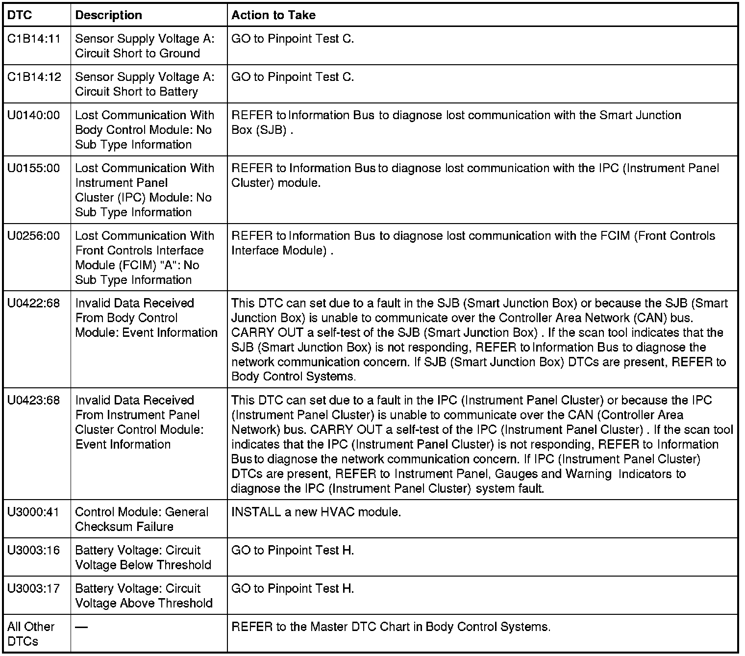 HVAC Module DTC Chart