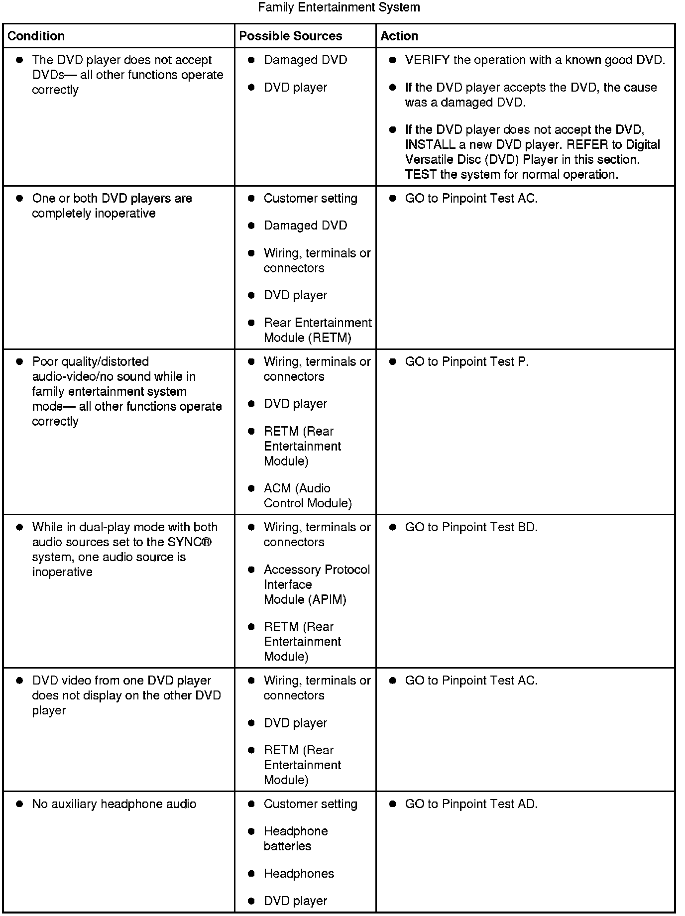 Symptom Chart - Family Entertainment System