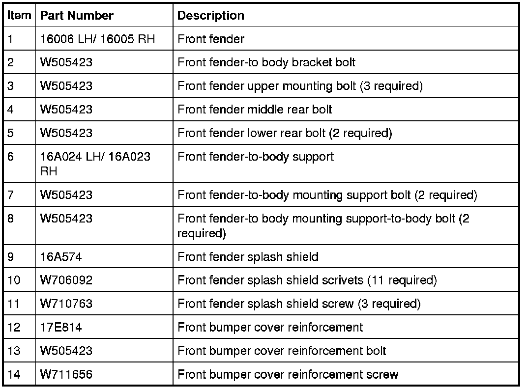 Front End Body Panels - Exploded View
