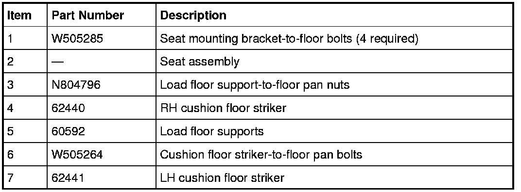 12. Remove the 4 mounting bracket-to-floor bolts and remove the third row seat.