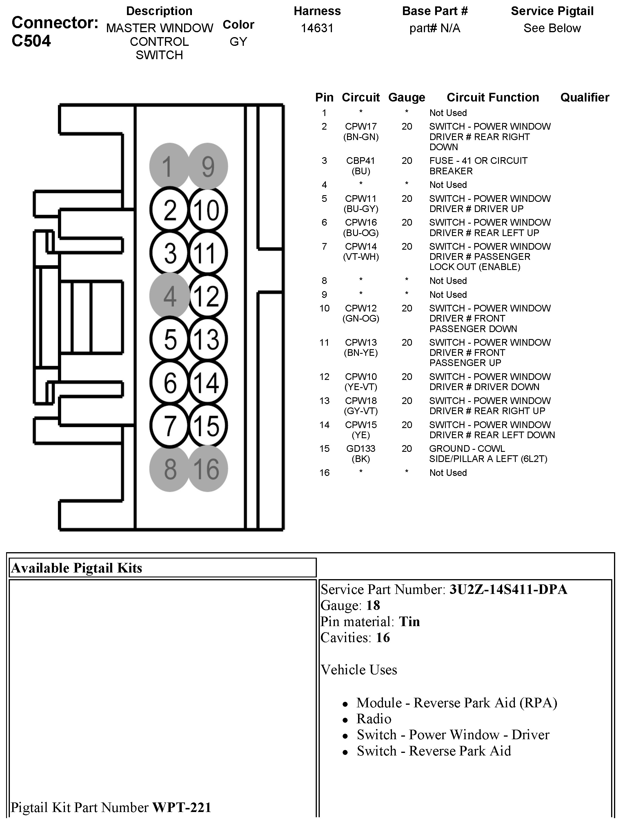 C504 Master Window Control Switch