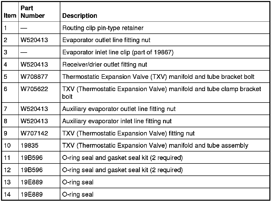 12. Detach the routing clip pin-type retainer from the Thermostatic Expansion Valve (TXV) manifold and tube bracket.