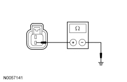 - Measure the resistance between the washer fluid level switch C138-2, circuit GD123 (BK/GY), harness side and ground.