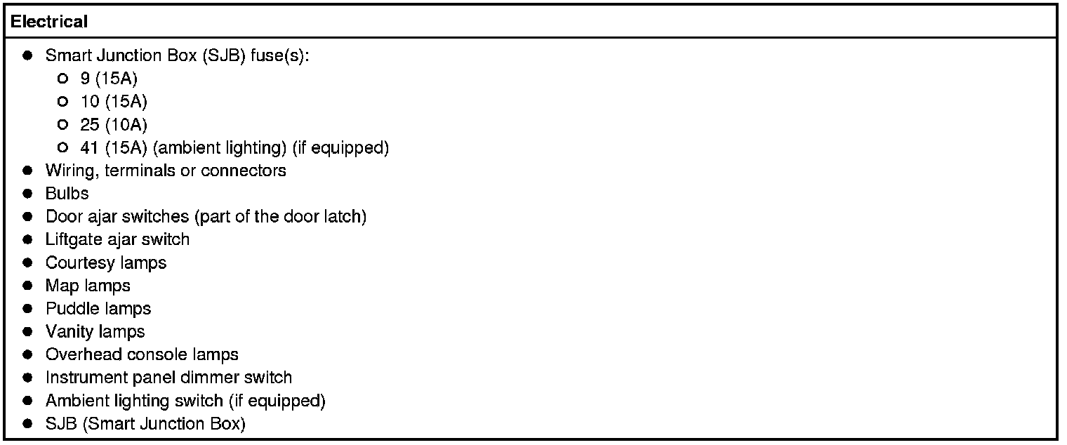 8. Clear the continuous DTCs and carry out the self-test diagnostics for the SJB (Smart Junction Box) and the Liftgate/Trunk Module (LTM) (if equipped).