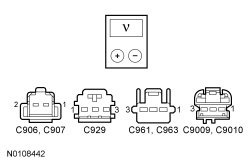 - Measure the voltage between the suspect demand lamp, harness side and ground as follows: