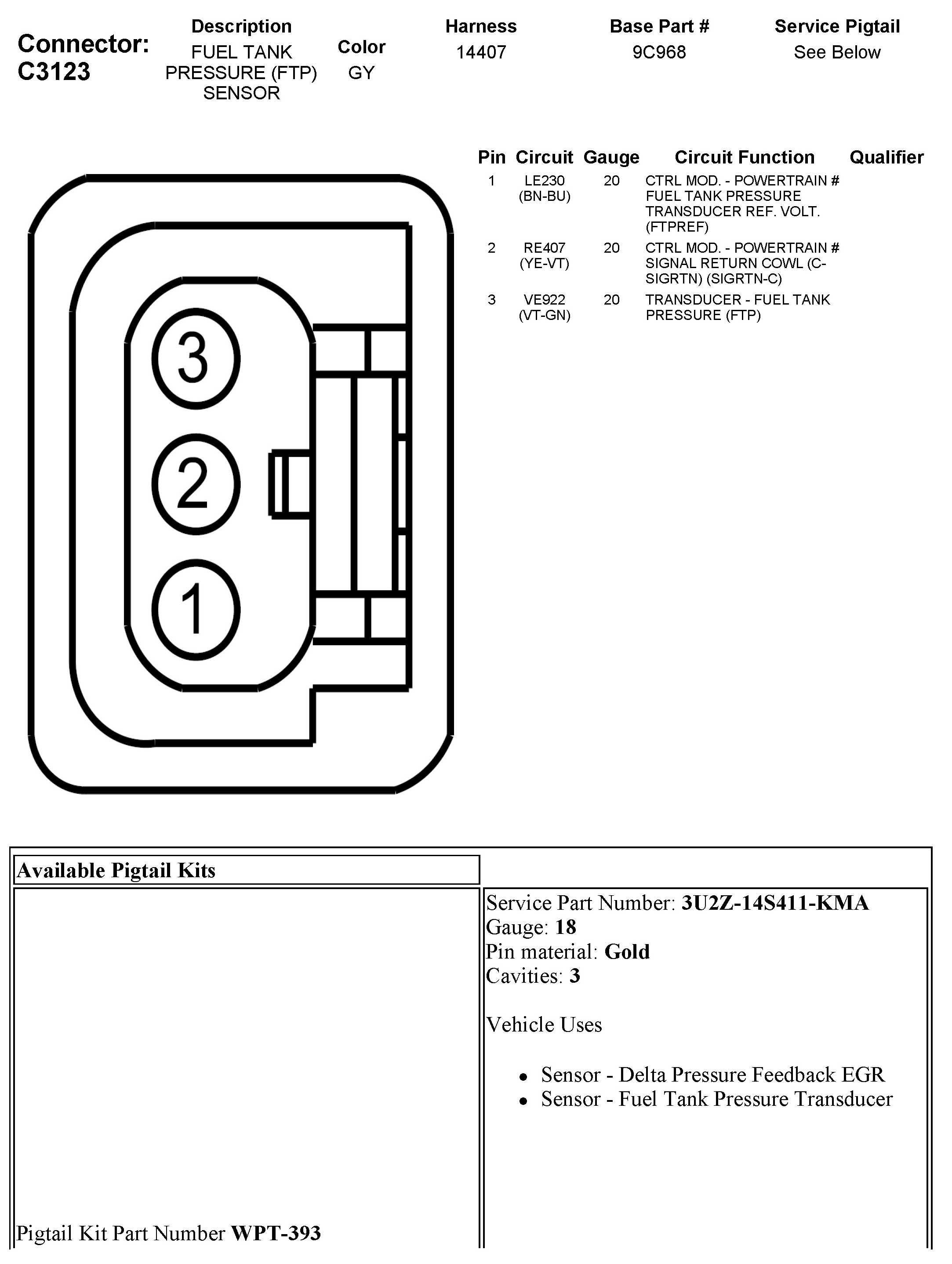Fuel Tank Pressure Sensor: Diagrams
