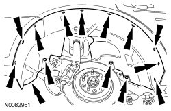 7. Remove the 8 screws, 3 pushpins, 3 scrivets and the RR fender splash shield.
