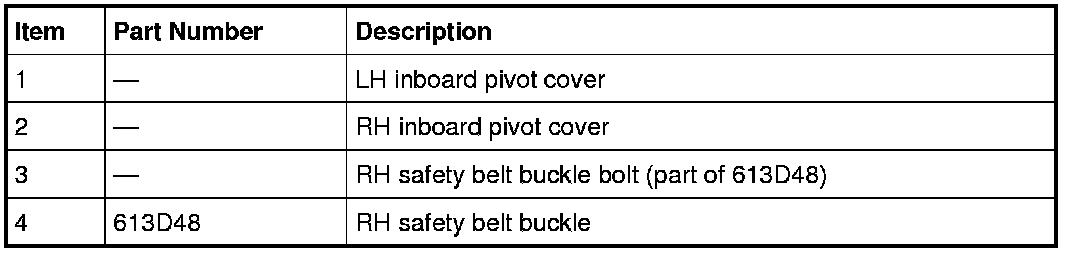 - Front safety belt buckle support assemblies (slide bar) (if equipped)