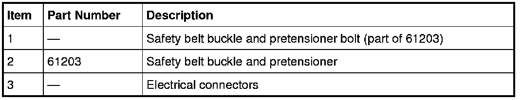 3. Remove the bolt and safety belt buckle and pretensioner.