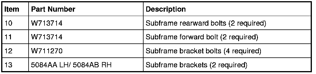 11. Remove and discard the 2 subframe forward bolts and remove the 2 subframe brackets.