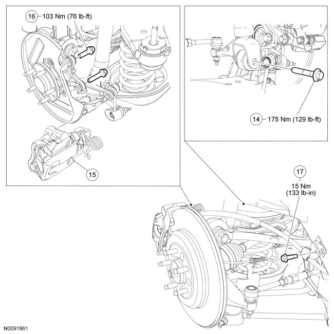 14. Tighten the LH and RH shock absorber lower bolts to 175 Nm (129 lb-ft).