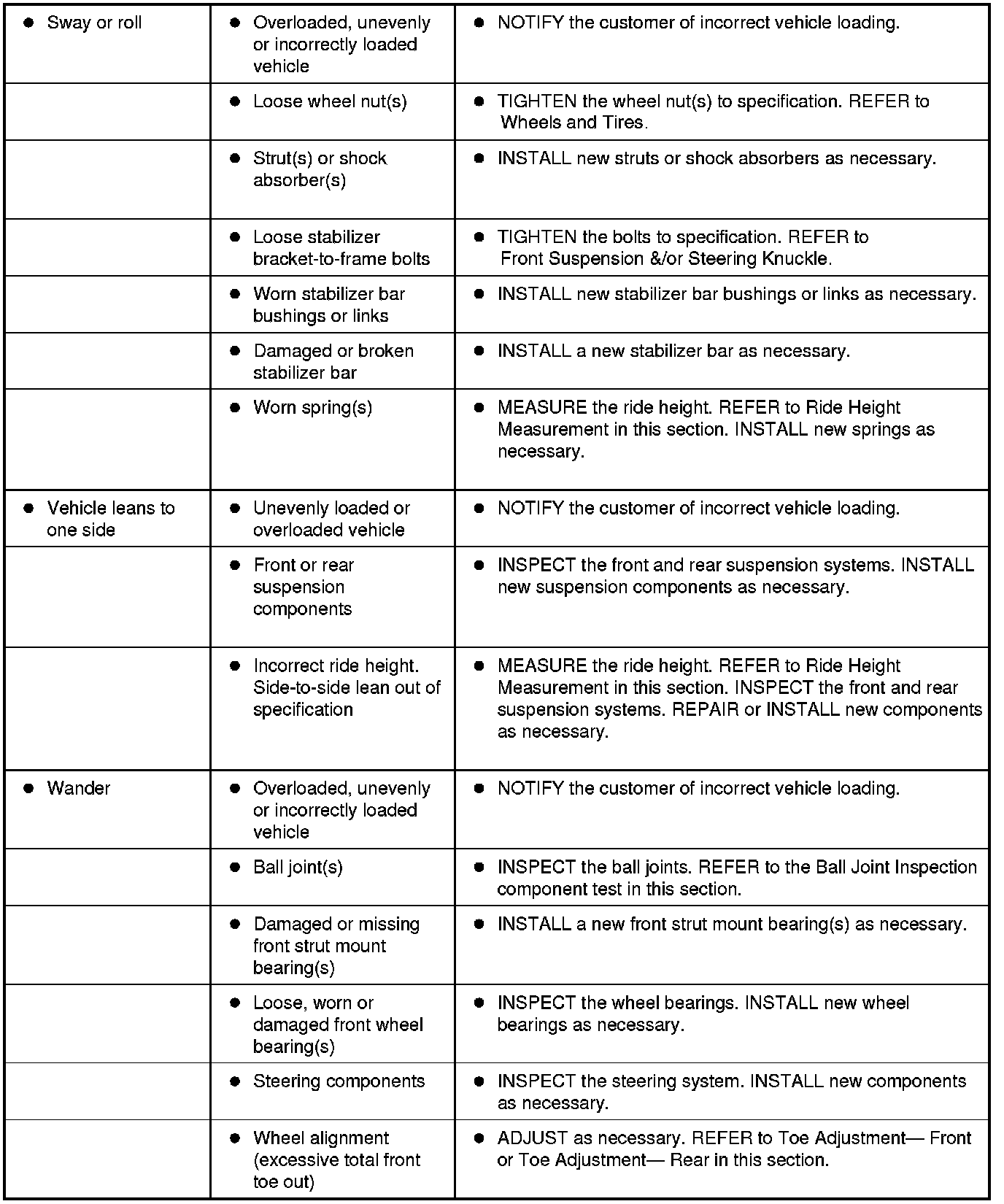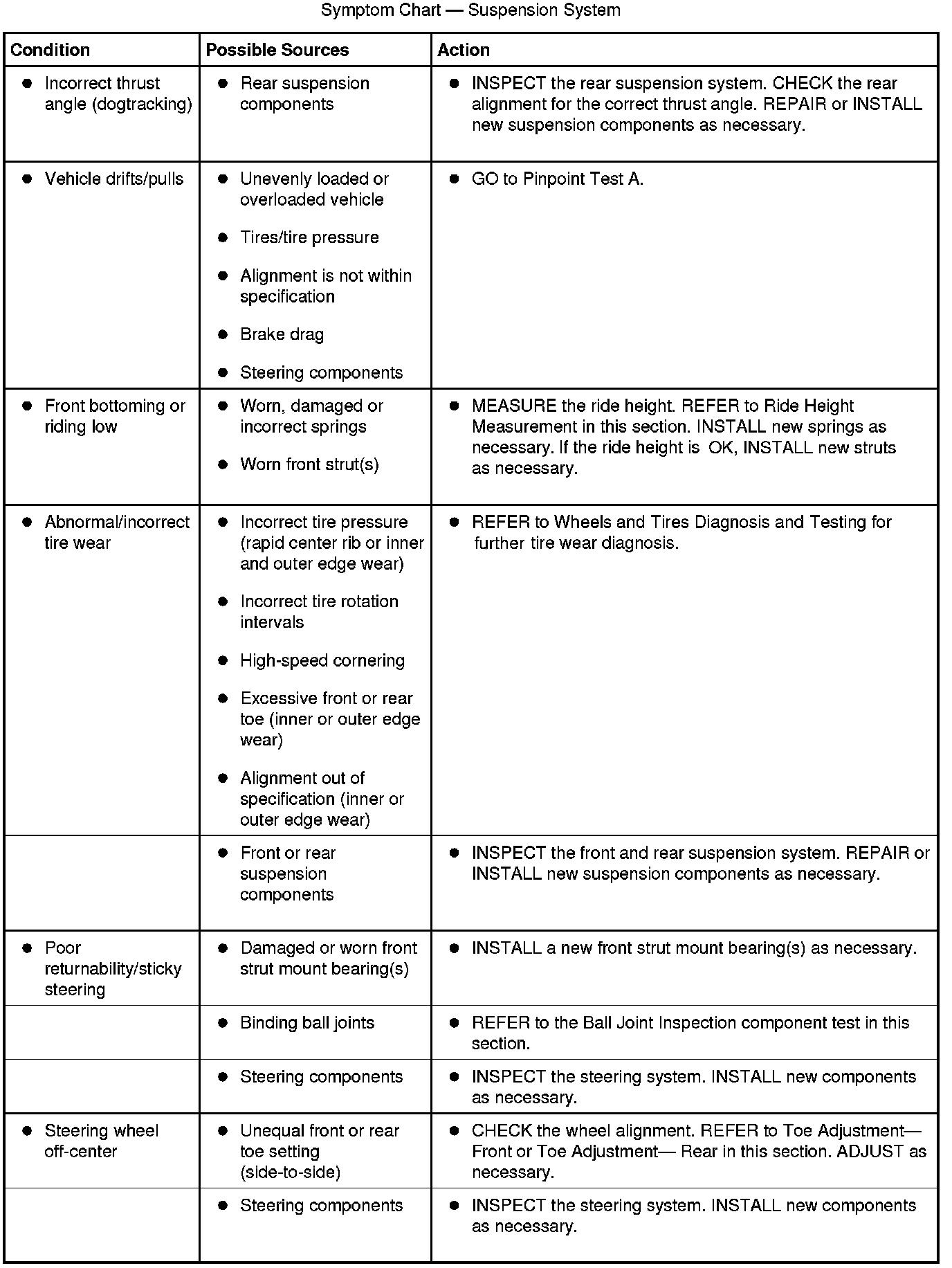 Symptom Chart - Suspension System