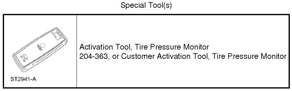 NOTE: If a sensor does not respond to the Tire Pressure Monitor Activation Tool, move the vehicle to rotate the wheels at least one-fourth of a turn and attempt to activate the same sensor again. If the sensor still does not respond, attempt to activate the same sensor again using the customer activation tool (if available). If the sensor still fails to train, attempt to train the sensor with the vehicle doors open.