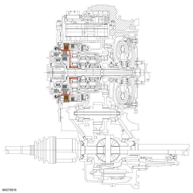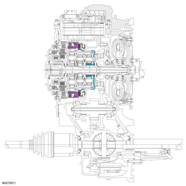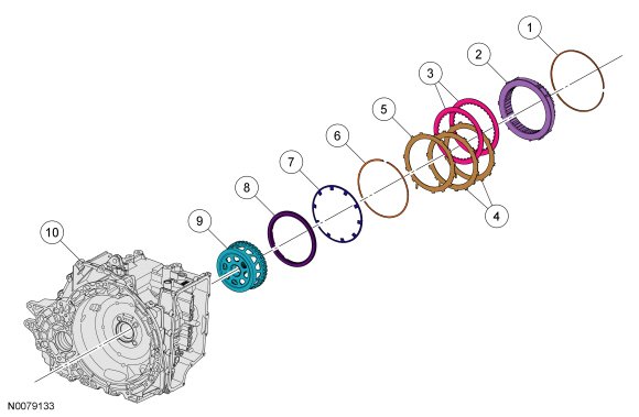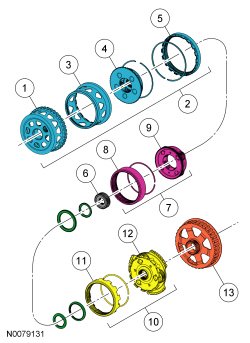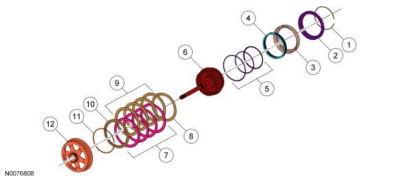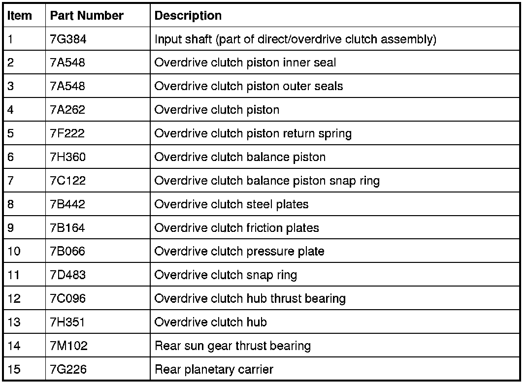 The overdrive clutch is a drive clutch that transfers power from the direct/overdrive hub and shaft assembly to the rear planetary carrier. The overdrive clutch is applied in 4th, 5th and 6th gear.