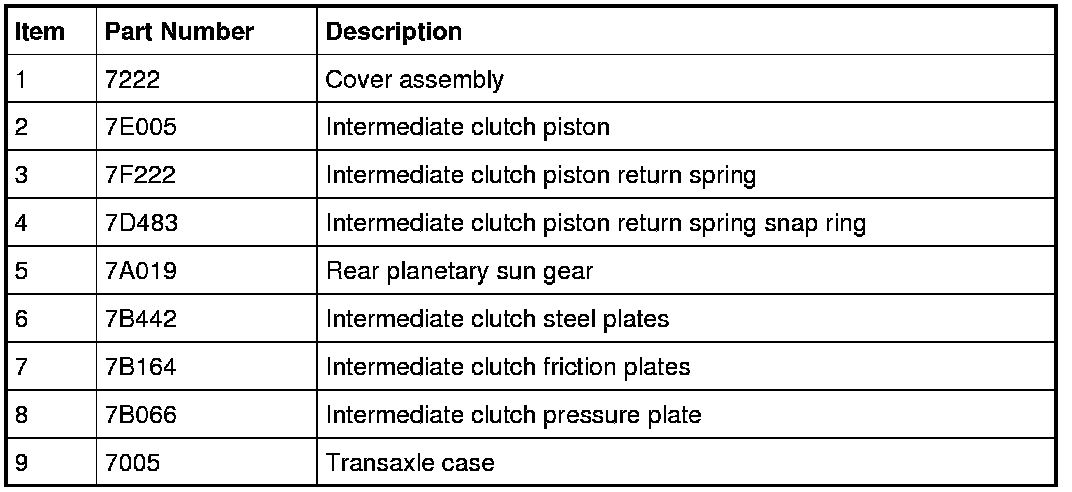 The intermediate clutch is a brake clutch that holds the rear sun and shell assembly. The intermediate clutch is applied in 2nd and 6th gear.