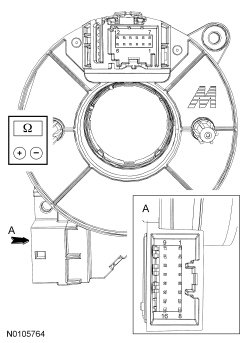 - Measure the resistance of the paddle shifter circuits through the clockspring, using the following chart: