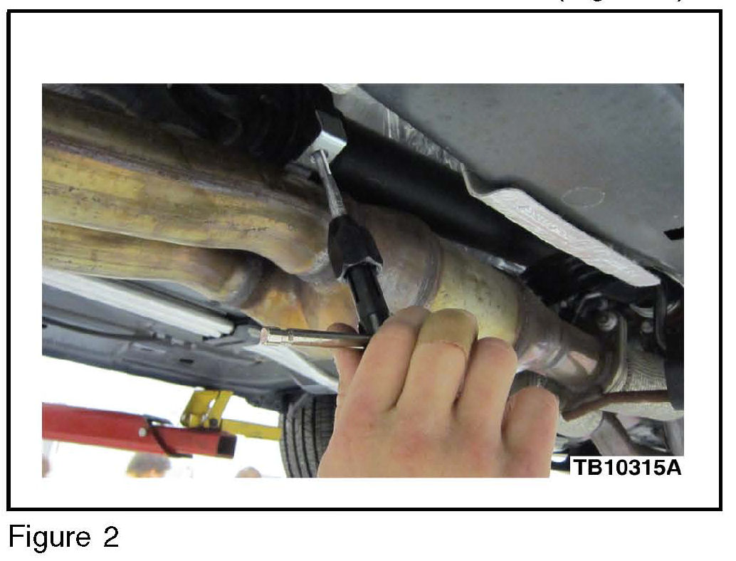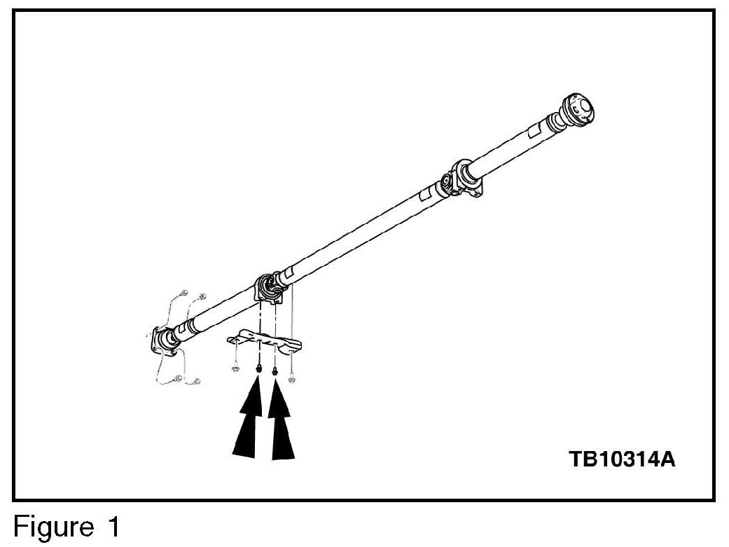 3. Remove the two (2) front center bearing bracket outer bolts and the two (2) front center bearing bracket inner bolts. Discard the bolt(s) which was not fully seated.