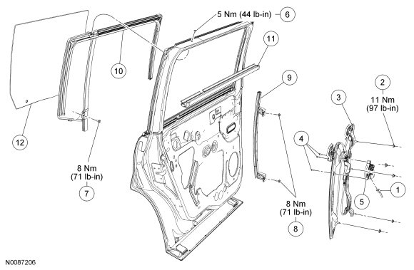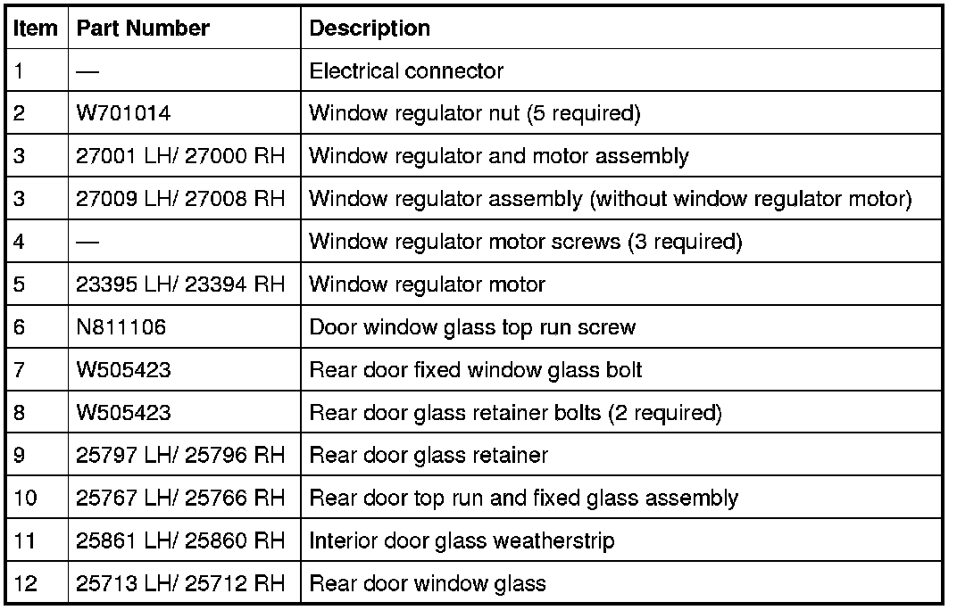 Glass, Frames and Mechanisms - Exploded View, Rear Door