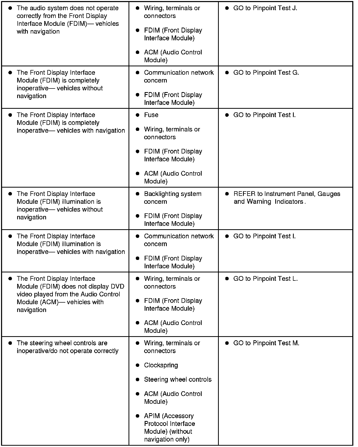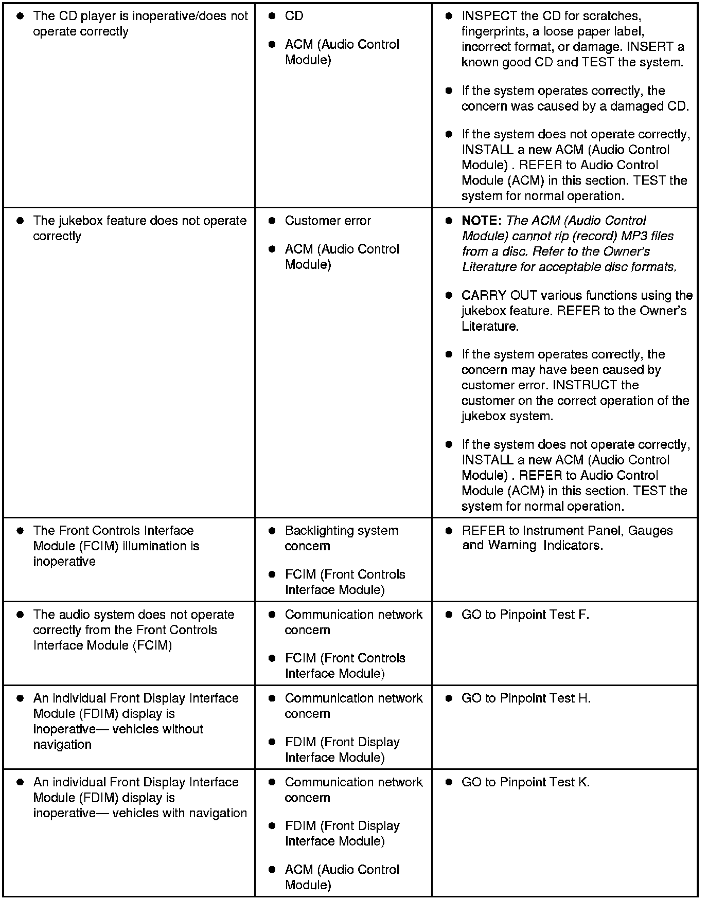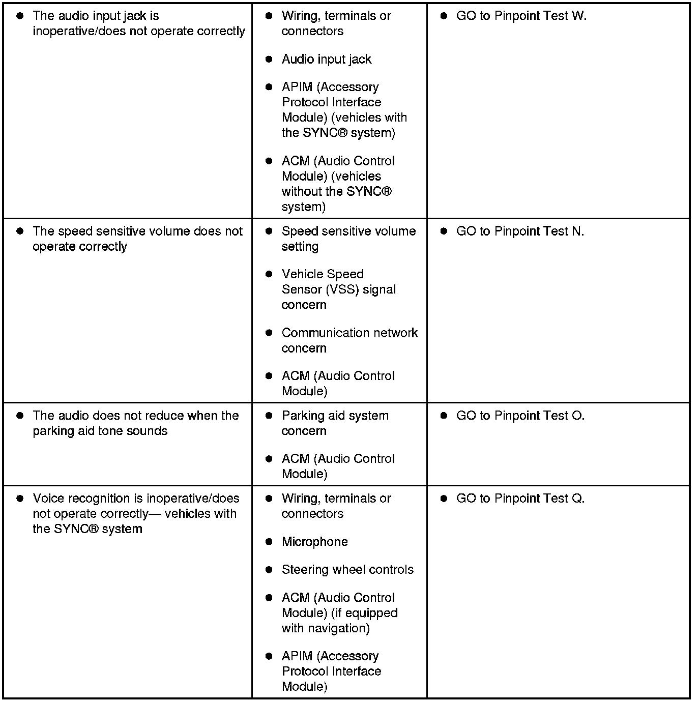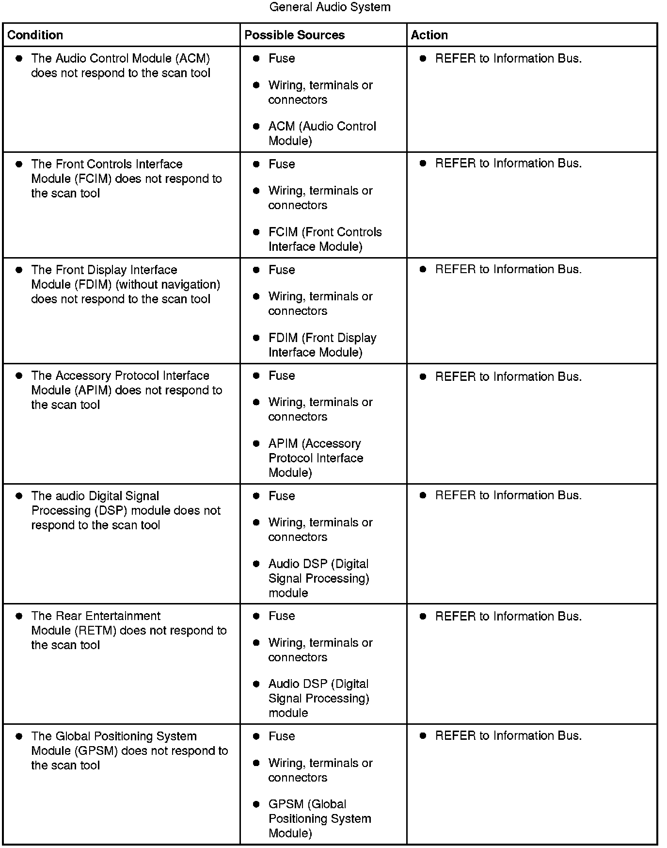 Symptom Chart - General Audio System