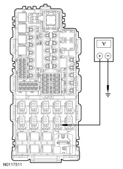 - Measure the voltage between PFSM (Power-Fold Seat Module) C4250A-8, circuit CBB18 (GY/OG), harness side and ground.