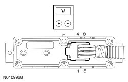 - Measure the voltage between PFSM (Power-Fold Seat Module) C4250E-4, circuit CPS58 (WH/BN), harness side and ground.