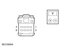 - With all the switch buttons at rest and seat select set to BOTH, measure voltage between the seat control switch and ground by back-probing switch connector pins as indicated in the following table:
