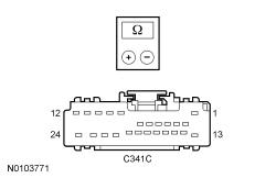 - Measure the resistance between DSM (Driver Seat Module) C341C pins, harness side as indicated in the following chart: