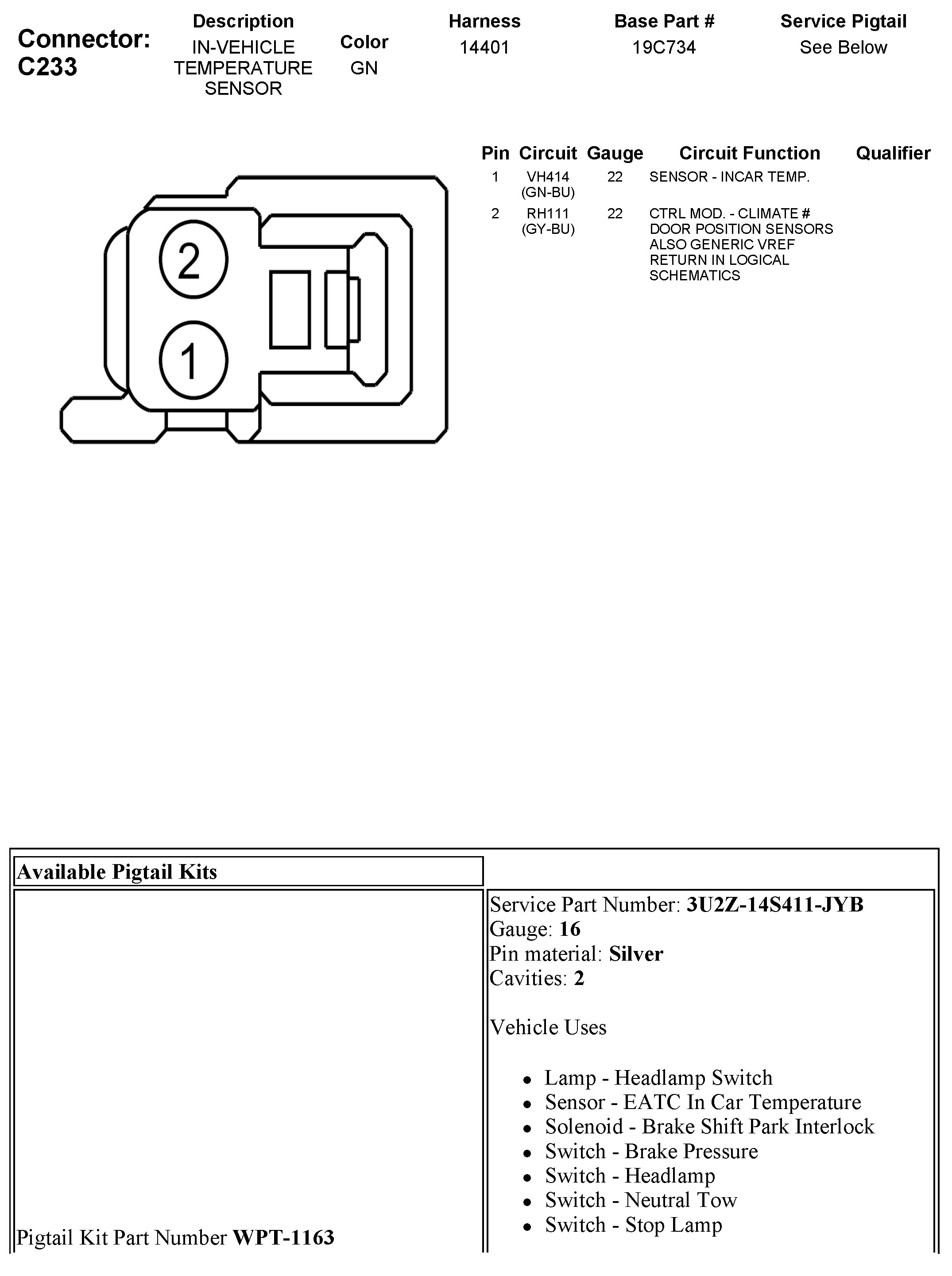 C233 In-Vehicle Temperature Sensor